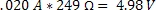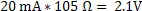 105 Ω 션트 저항을 사용하는 경우 전류계에는 최대 2.1V가 필요하므로 시스템의 총 전압 요구 사항은 다음과 같습니다.