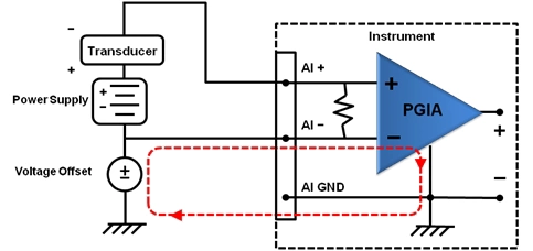 또한 절연은 큰 공통 모드 전압이 데이터 수집 디바이스를 손상시키는 것을 방지합니다. 공통 모드 전압은 계측 증폭기의 양극 및 음극 입력 모두에 존재하는 전압입니다.