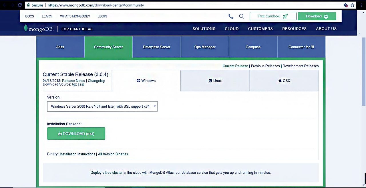 아키텍처를 알고 나면 공식 웹 사이트에서 최신 버전의 MongoDB를 다운로드해야 합니다.