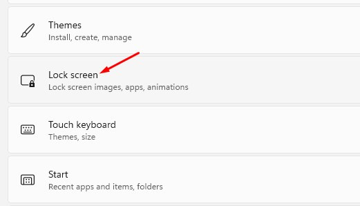 3. 오른쪽 창에서 잠금 화면 옵션을 클릭합니다.