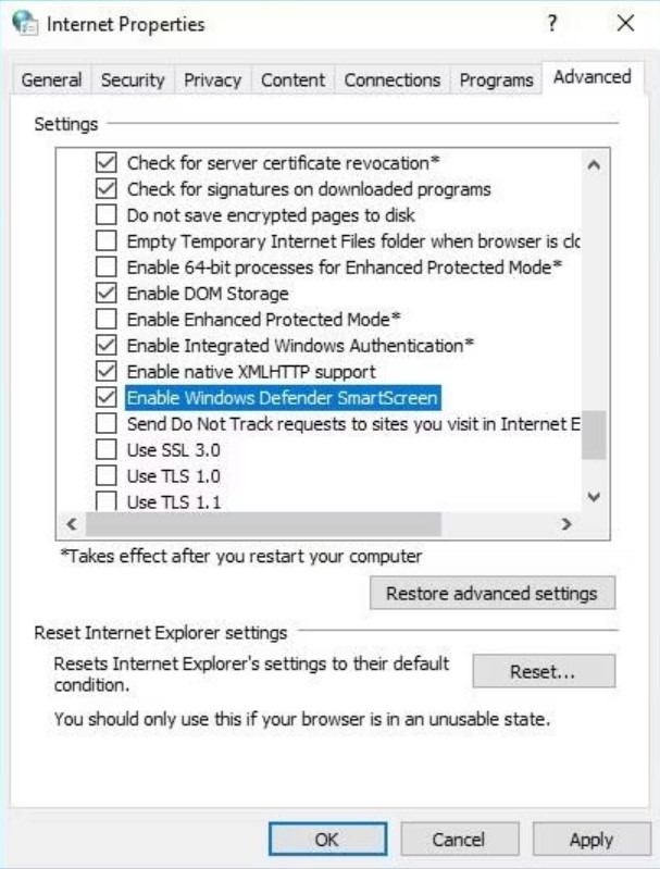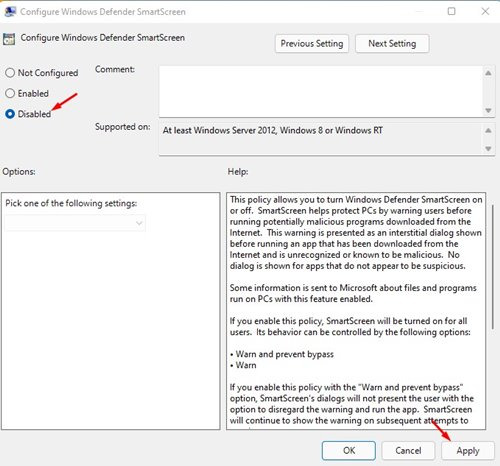 위에서 변경한 후 컴퓨터를 다시 시작하십시오. 다시 시작하면 Windows Defender SmartScreen이 비활성화됩니다.