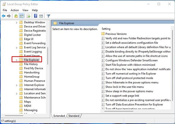 Computer Configuration > Administrative templates > Windows Components > File Explorer