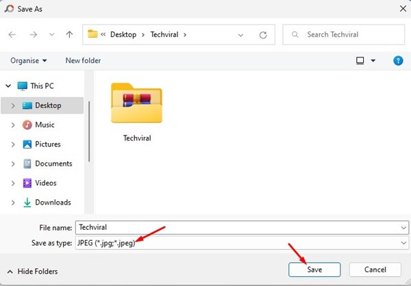 4. JPEG를 선택하고 저장 형식에서 저장 버튼을 클릭합니다.