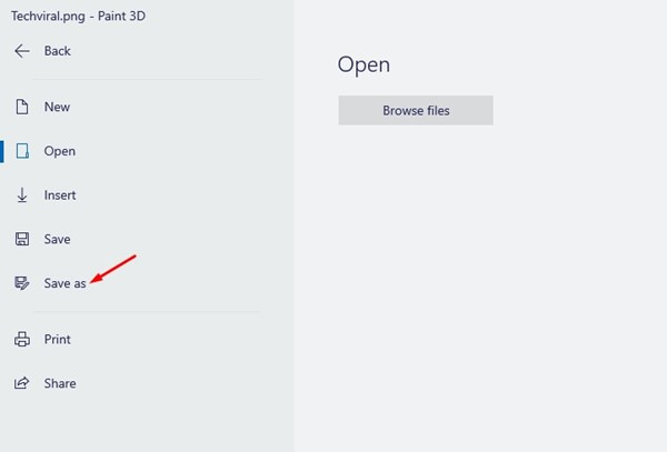 2. 그림판 또는 그림판 3D 응용 프로그램에서 앱이 열리면 파일 버튼을 클릭합니다.