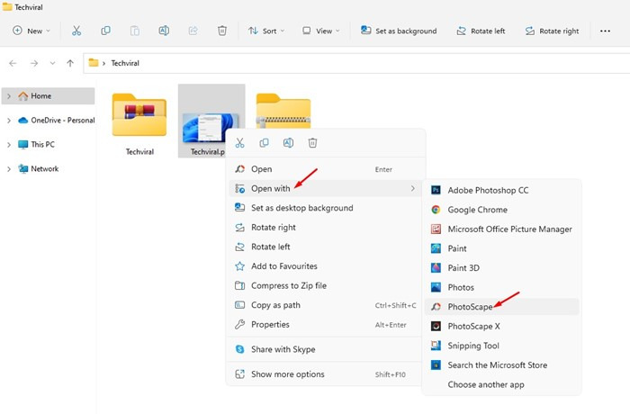 2. 변환하려는 PNG 파일을 마우스 오른쪽 버튼으로 클릭하고 > Photoscape로 열기를 선택합니다.
