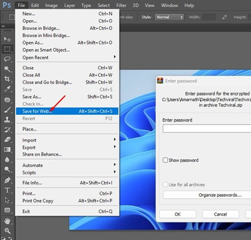 3. 옵션 목록에서 웹용으로 저장 옵션을 선택합니다.