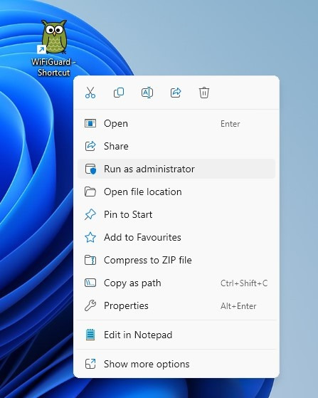 따라서 앱의 바로가기가 바탕 화면에 있는 경우 마우스 오른쪽 버튼으로 클릭하고 '관리자 권한으로 실행'을 선택할 수 있습니다.