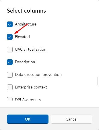 5. 관리자 권한 열에서 관리자 권한으로 실행 중인 앱을 확인할 수 있습니다.