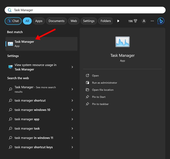 1. Windows 검색에서 작업 관리자 앱을 엽니다.