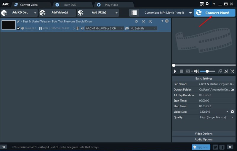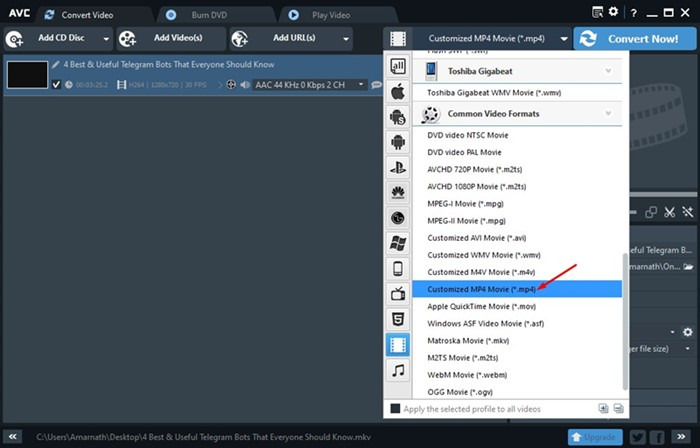 Any Video Converter는 MKV 비디오를 MP4로 변환할 수 있는 Windows 11용 무료 비디오 변환기 앱입니다.