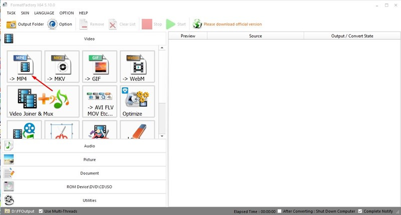 Format Factory는 MKV 파일을 MP4로 변환할 수 있는 Windows 11용 또 다른 무료 비디오 변환기 앱입니다.