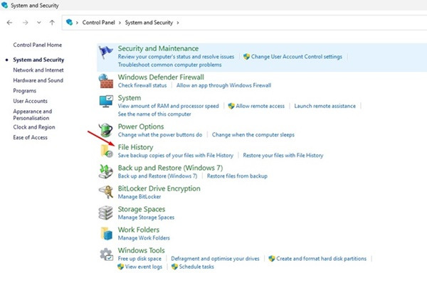 3. 파일 히스토리를 선택합니다.