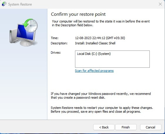 6. 선택을 확인하고 마지막으로 마침 버튼을 클릭하여 Windows 11을 복원합니다.