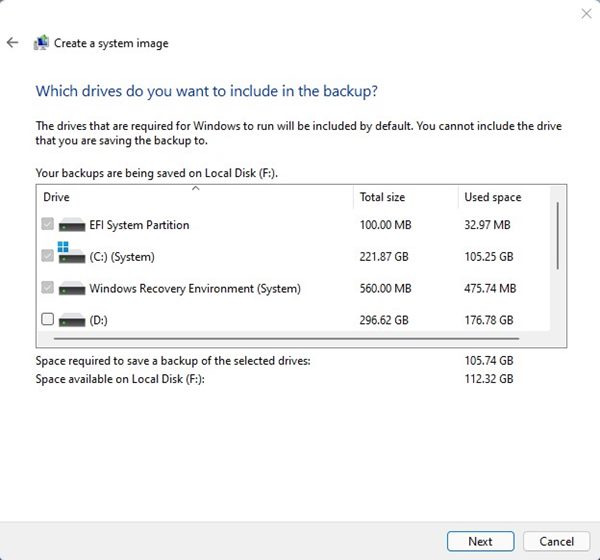 이 백업 방법을 사용하면 EFI 시스템 파티션, C 드라이브 폴더, Windows 복구 환경 등을 빠르게 백업할 수 있습니다. PC의 다른 드라이브도 백업할 수 있습니다.
