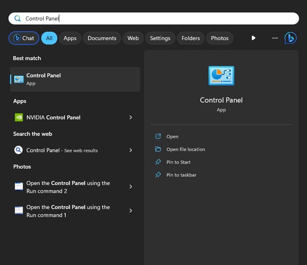 1. Windows 11 검색에서 제어판을 엽니다.