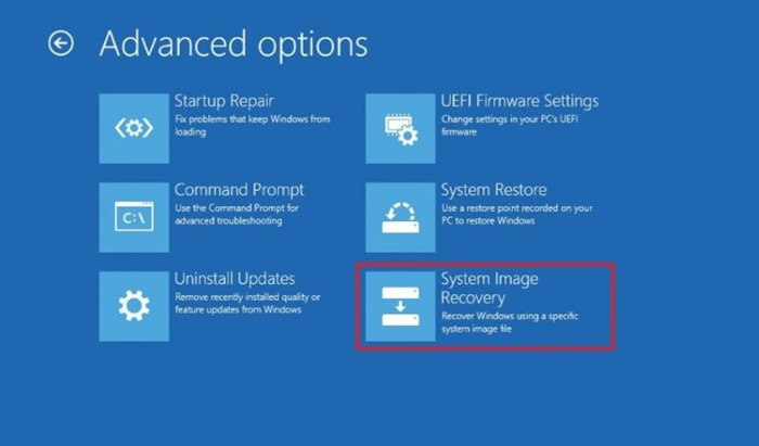 4. 시스템 이미지 복구> 고급 옵션> 문제 해결을 선택합니다.