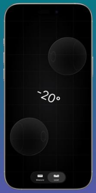 Apple의 Measure 앱은 이제 흰색 원 대신 두 개의 액체 유리 기포가 있는 레벨용 액체 유리 디자인을 특징으로 합니다.