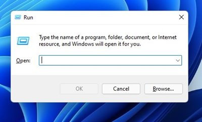 1. 키보드에서 Windows 키 + R 버튼을 누릅니다. 그러면 RUN 대화 상자가 열립니다.