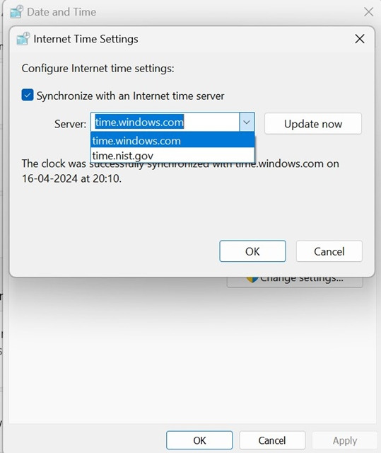 시간 동기화 실패 문제를 해결하는 다음으로 좋은 방법은 Windows 11에서 시간 서버를 변경하는 것입니다.