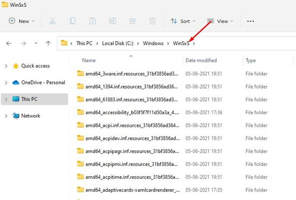 2. C:\Windows\WinSxS 파일로 이동합니다.