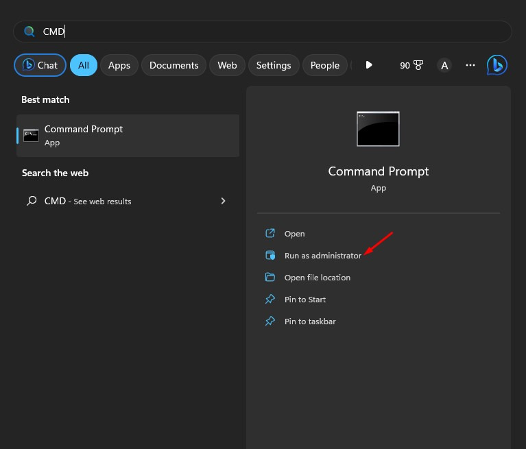 1. Windows 검색에서 명령 프롬프트를 검색합니다. 명령 프롬프트를 우클릭하여 관리자로 실행하기를 선택하세요.