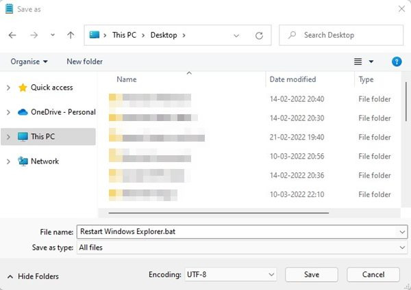 작업 관리자에 의존해 Explorer.exe 프로세스를 재시작하고 싶지 않다면, 대신 배치 파일을 만들 수 있습니다. 배치 파일을 생성한 후, Windows 탐색기 프로세스를 재시작하고 싶을 때마다 더블 클릭하세요.