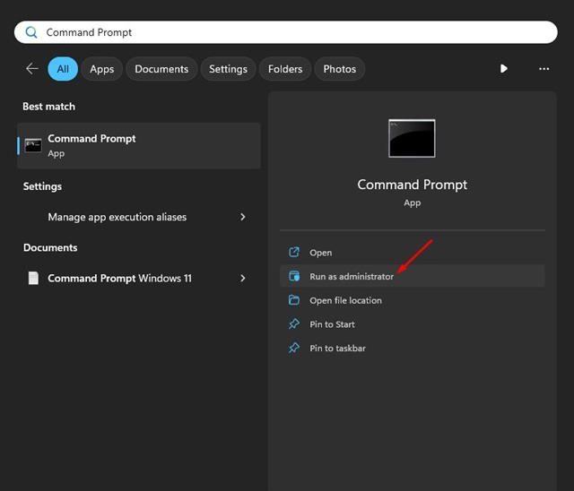 1. 명령 프롬프트를 우클릭하여 관리자로 실행하기를 선택하세요.