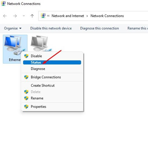 5. 연결된 네트워크 어댑터를 우클릭하여 상태를 선택하세요.