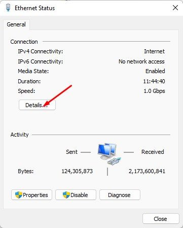 7. 네트워크 연결 상세 정보 상자에서 MAC 주소인 물리적 주소를 체크하세요.
