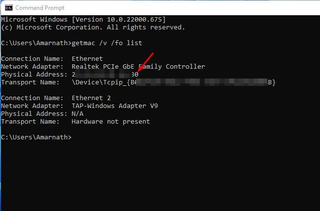 5. 명령 프롬프트를 통해 Windows 11에서 MAC 주소를 찾기