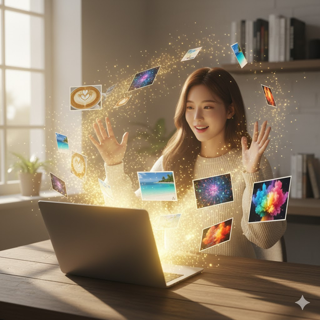 콘텐츠의 첫인상은 '이미지'가 결정합니다. 하지만 무료 이미지 사이트(Unsplash, Pixabay 등)에서 본 사진들은 이미 다른 곳에서 너무 많이 쓰여 식상하죠. 내가 원하는 분위기를 정확히 담은 사진을 찾는 건 모래사장에서 바늘 찾기입니다.