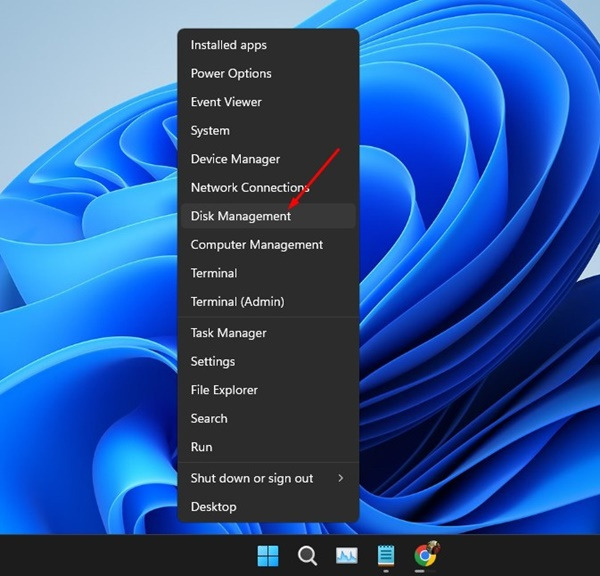 1. Windows 11 시작 버튼을 마우스 오른쪽 버튼으로 클릭하고 디스크 관리를 선택합니다.