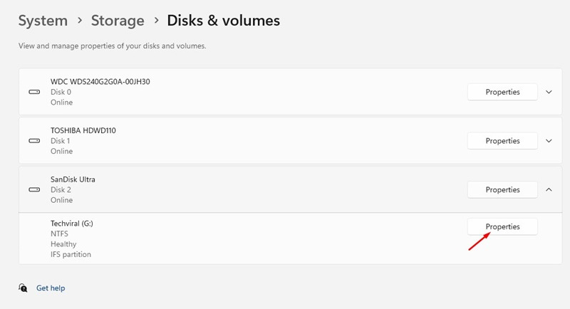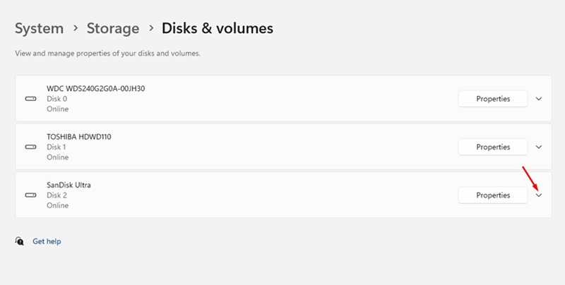 5. 연결된 USB 드라이브 옆에 있는 드롭다운 아이콘을 클릭합니다.