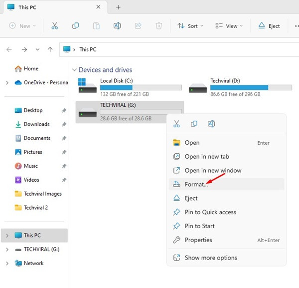 USB 드라이브를 포맷하기 위해 타사 도구를 사용할 필요가 없습니다. 다른 모든 Windows 버전과 마찬가지로 Windows 11에서는 파일 탐색기에서 바로 연결된 드라이브를 포맷할 수도 있습니다.