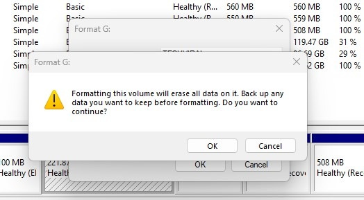 7. USB 드라이브가 포맷됩니다. 확인 메시지가 표시됩니다.
